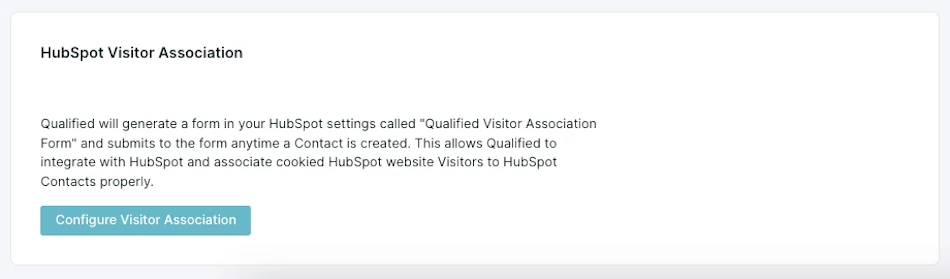 On the HubSpot settings page in Qualified, click the Configure Visitor Association button.