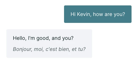 Your visitor will see only the messages in their chosen language. They will also see a message at the top of the conversation letting them know that the rep is using AI to help translate the conversation.