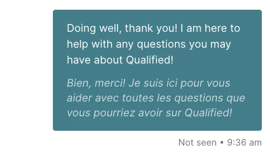 Use of this feature requires Qualified multi-language support. If you are interested in using this feature, but don’t have Qualified multi-language or don’t see the options in your account, contact your Qualified Success Architect.