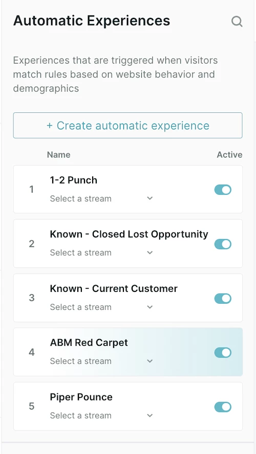 Automatic experiences can evaluate several different criteria - including the page the visitor is on, the referrer that brought them there, whether they fit into your ICP or one of your other segments, or even where they’re located geographically.