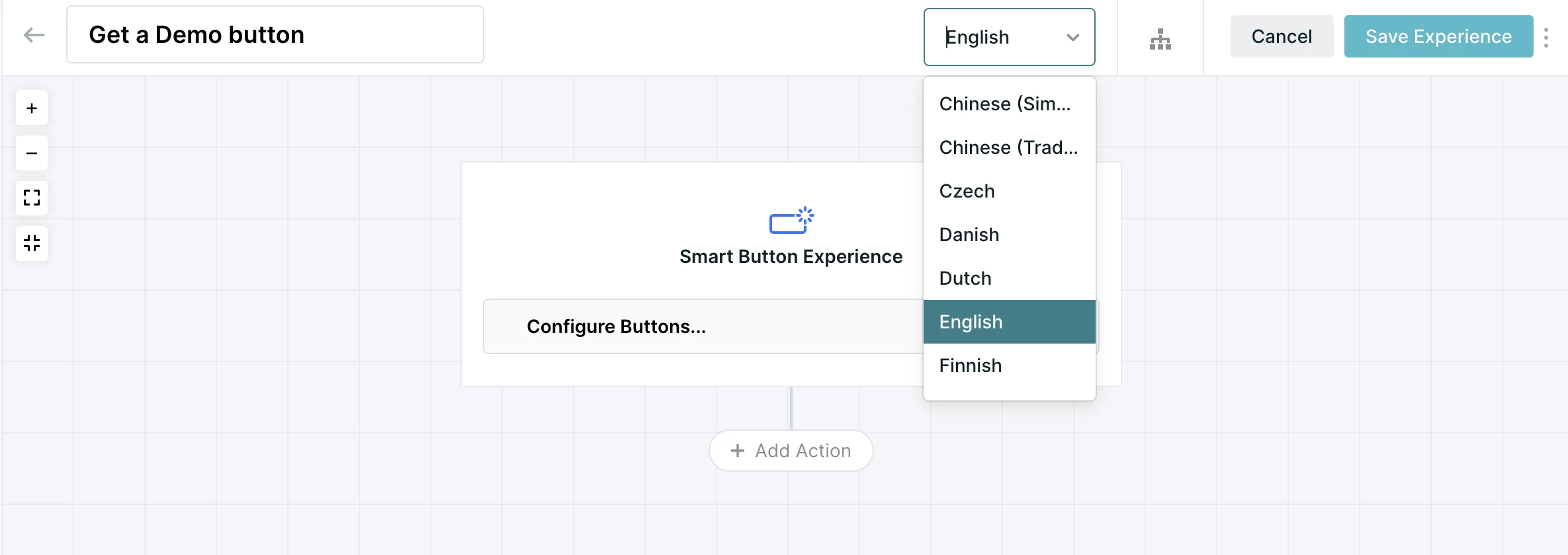 - Click the Configure Buttons… step at the top of the experience. This will open the Smart Selector to select the button(s) that will trigger the experience.
