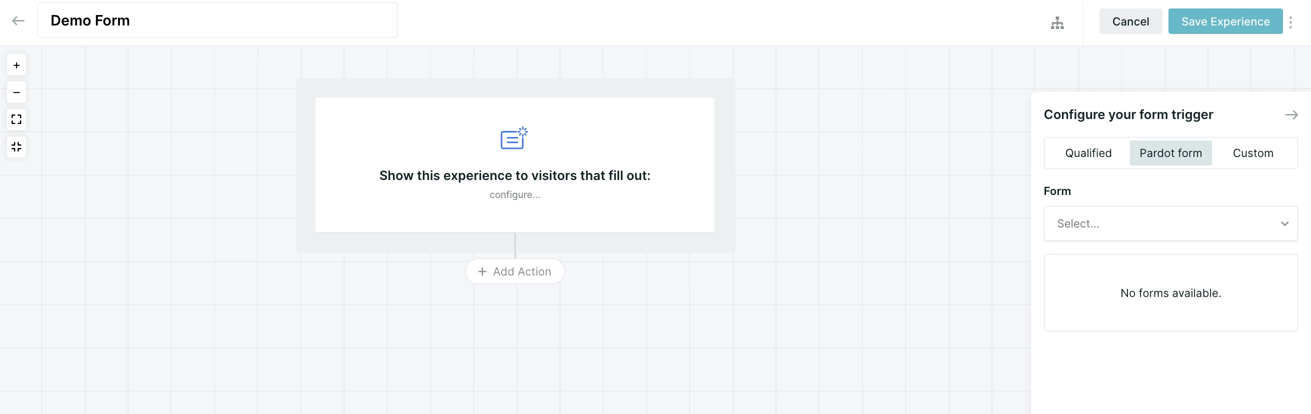 - Click the Show this Experience to visitors that fill out: step at the top of the experience to configure the form.